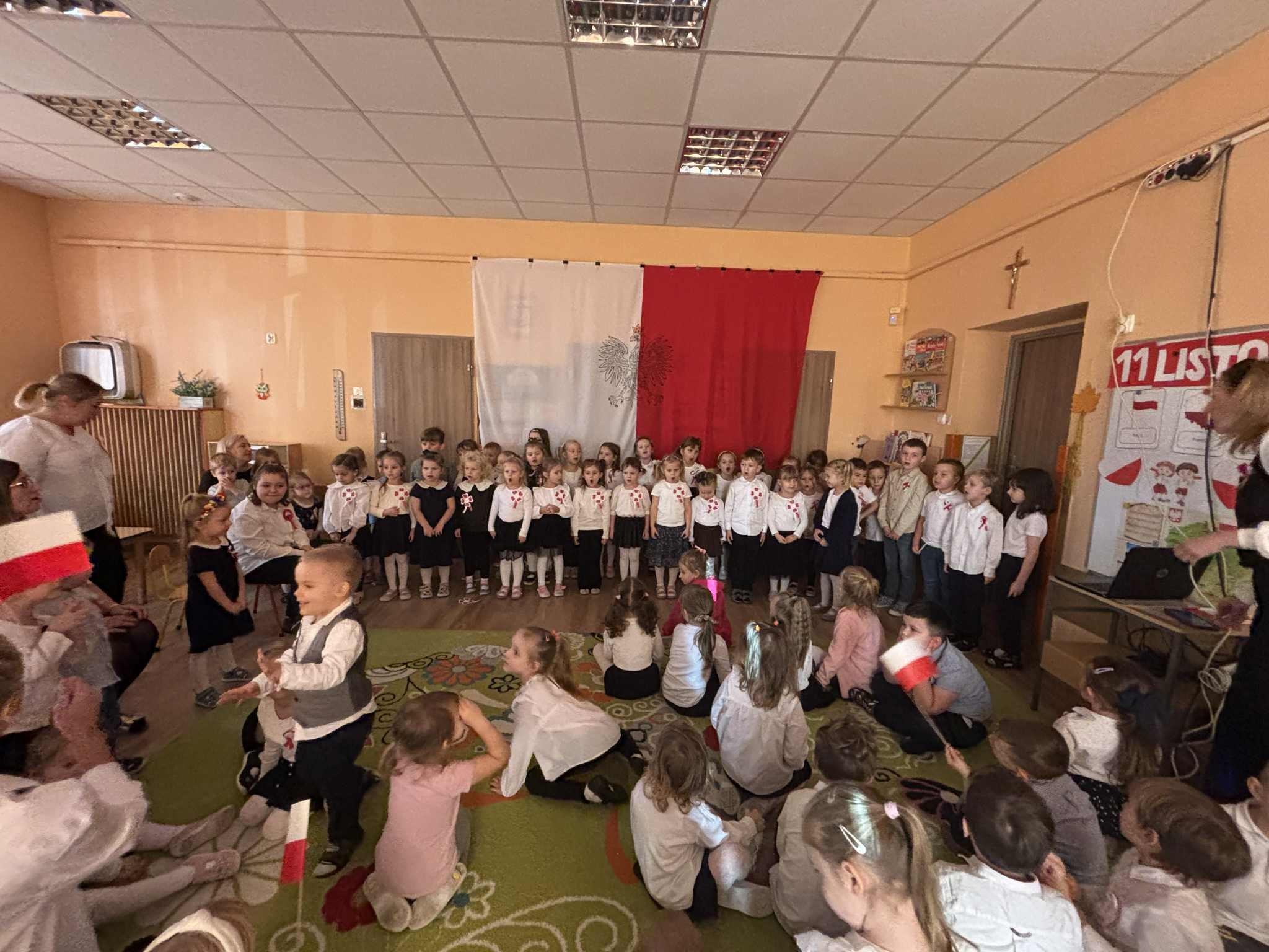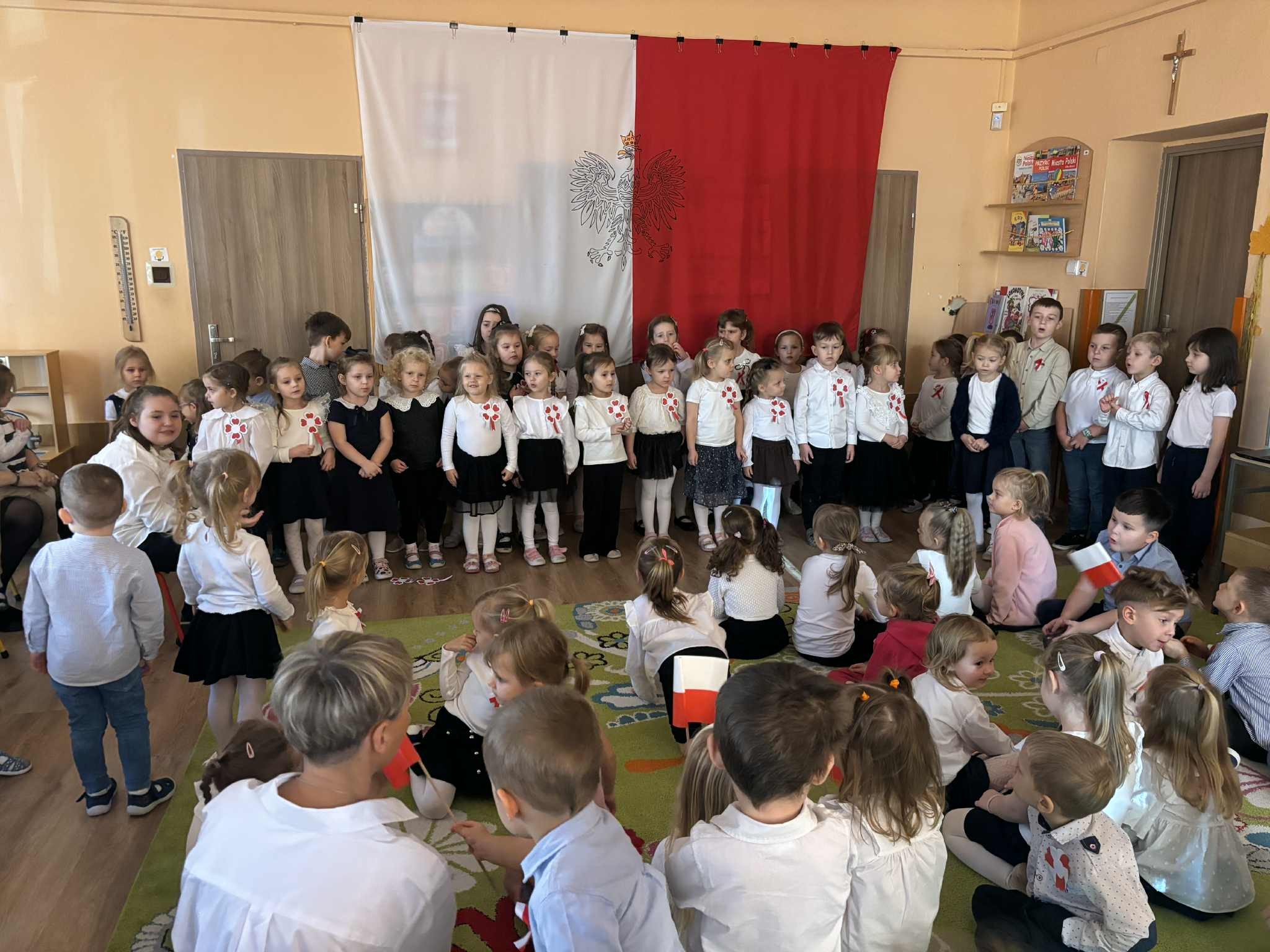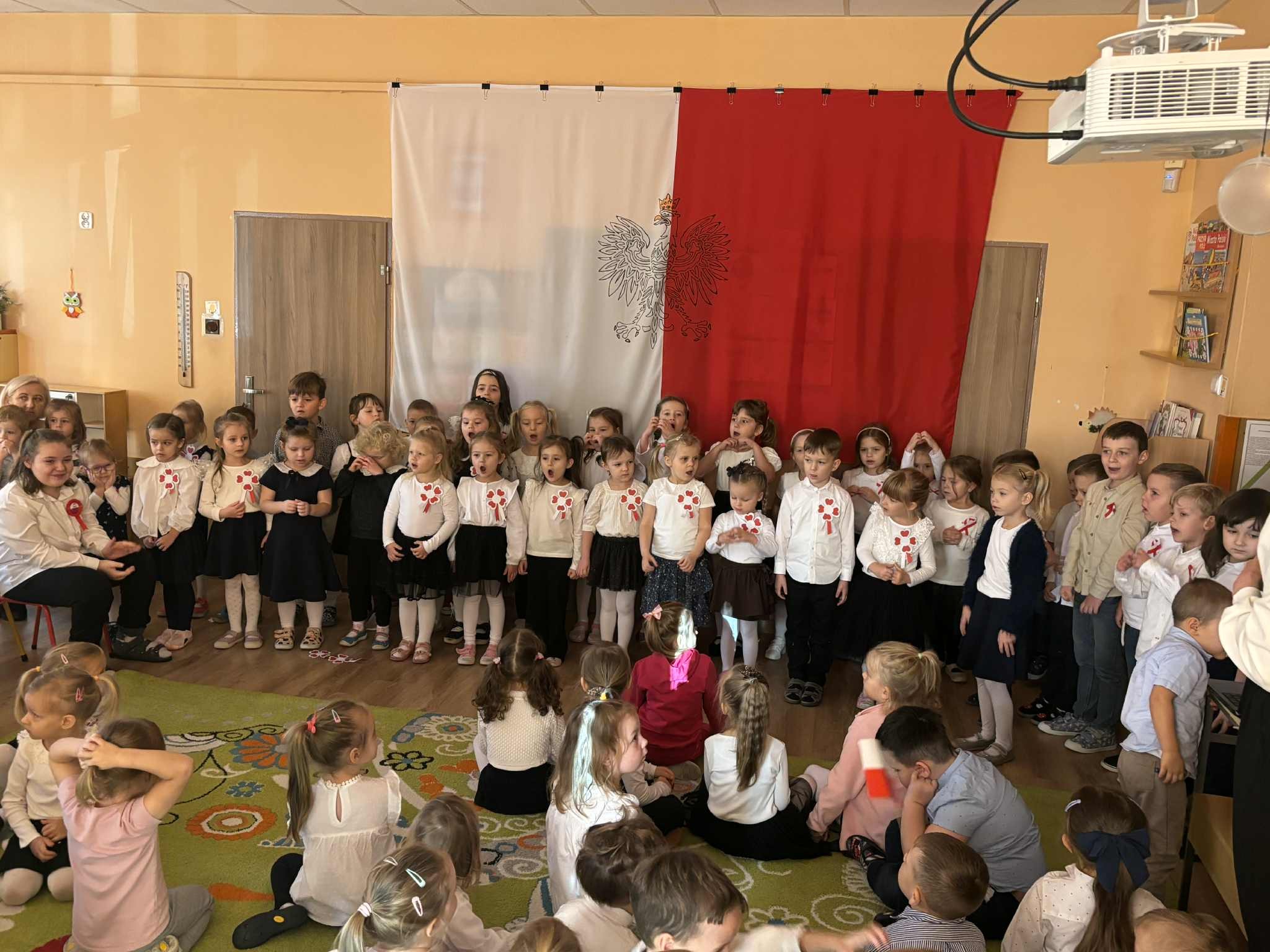 Z okazji Narodowego Święta Niepodległości nasze przedszkole włączyło się w ogólnopolską akcję „Szkoła do hymnu”. Dzieci, nauczyciele i wszyscy pracownicy z dumą odśpiewali „Mazurek Dąbrowskiego”, oddając hołd naszej Ojczyźnie. To była piękna i wzruszająca chwila, pełna patriotyzmu i wspólnej radości z bycia Polakami.